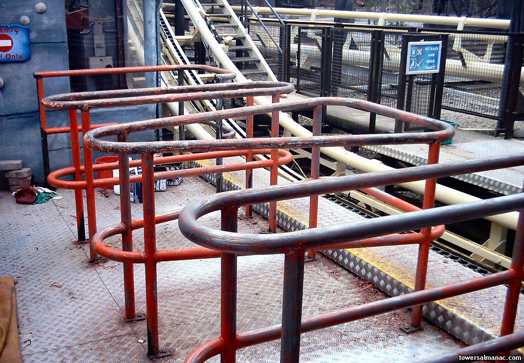 On the other half of the station, you can see the original red railing colour underneath the brown coating.
