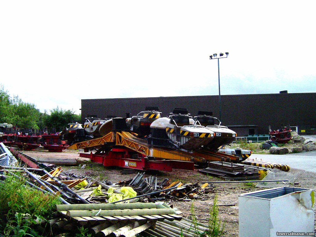 Prior to being removed from the park, the ride was held in storage behind Duel.