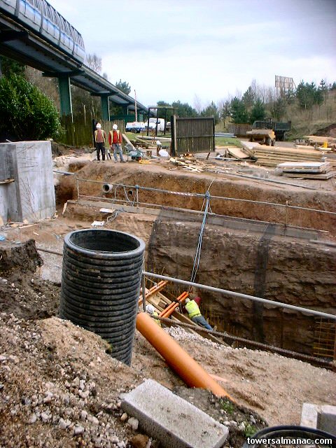 The tunnel appears to have been blasted, and dug out. Iron work will then be constructed, and further concrete then poured into the moulds along with the iron work.