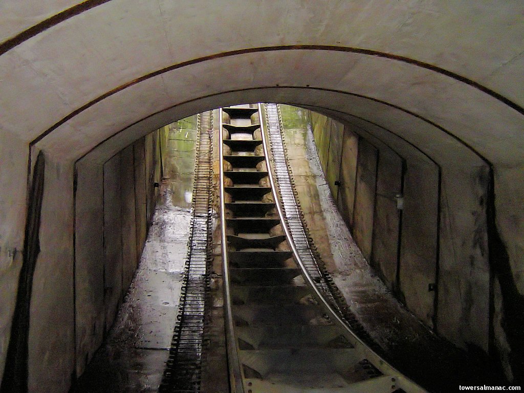 Looking back towards the drop. Note the bars on the floor - as the incline of the floor increases, these bars become stepladders upwards.