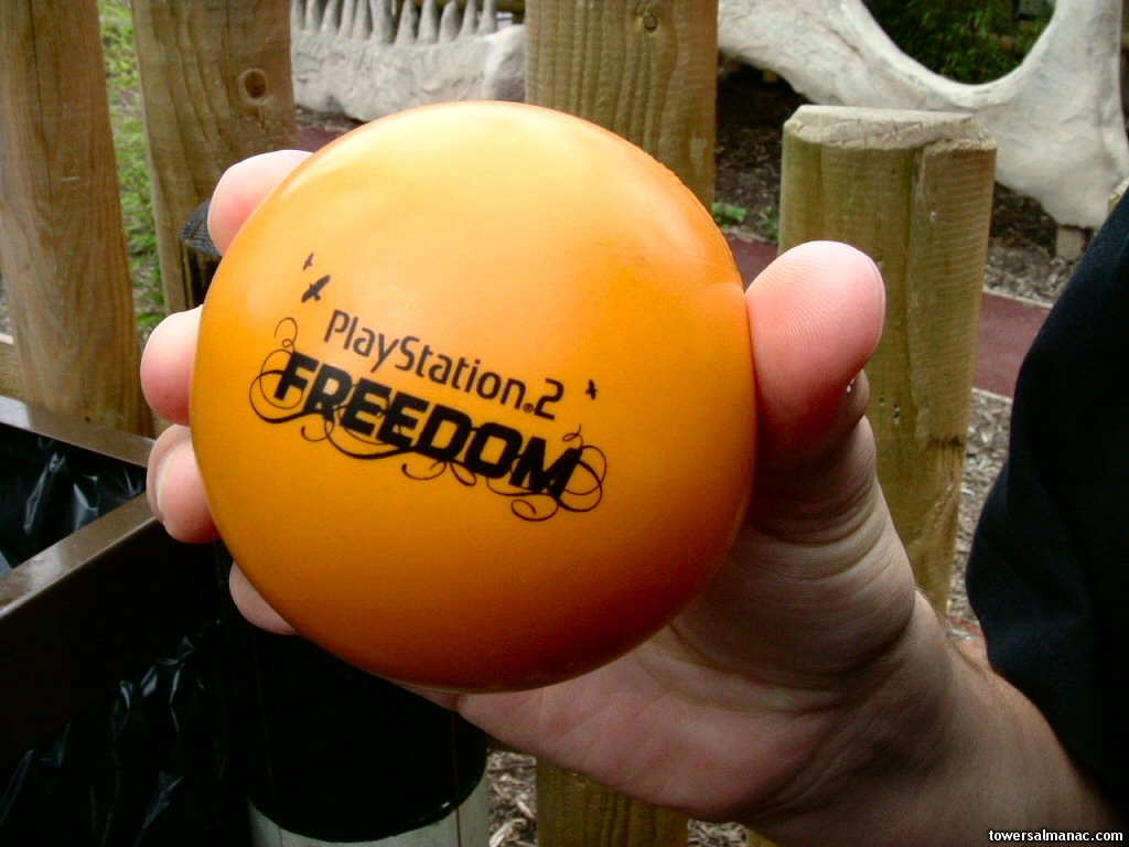 One such freebie was this orange ball, with the PlayStation 2 Freedom Weekender logo on.