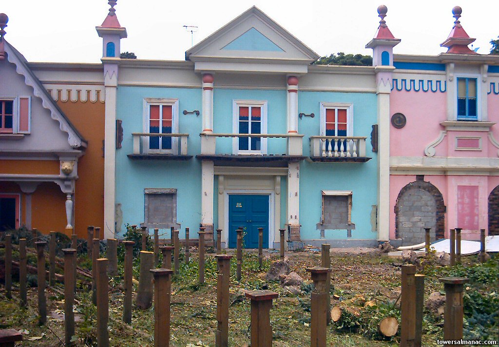 Looking across from where the extended queue line stood, at the side of the Toyland Tours building.