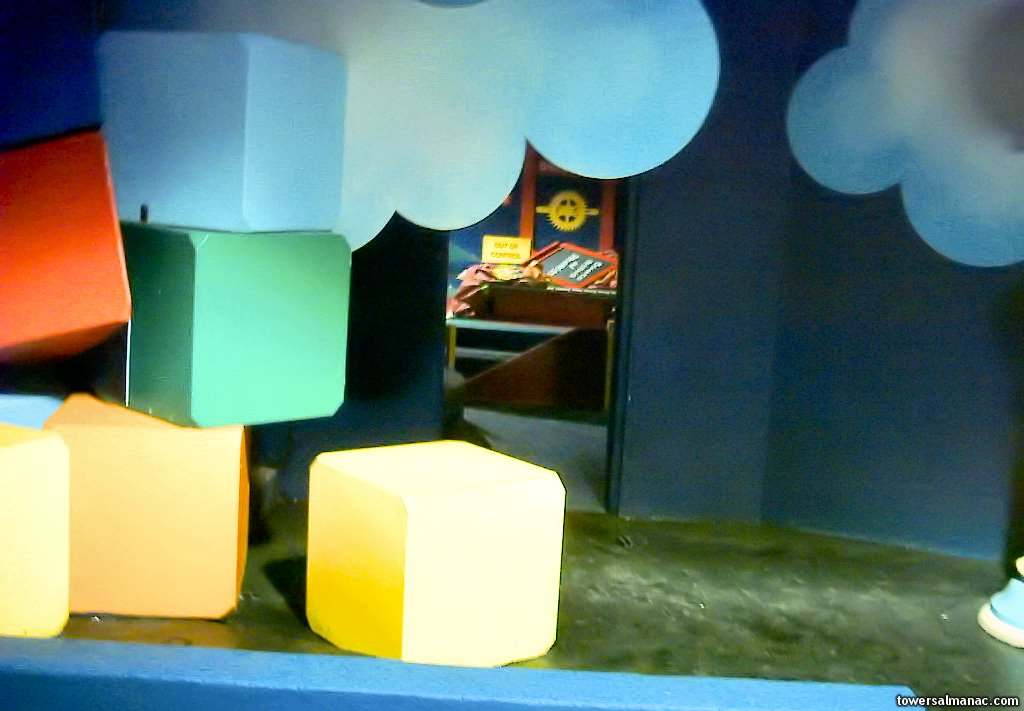 From the station, you can see through a gap in the wall towards the "bouncy castles" area.