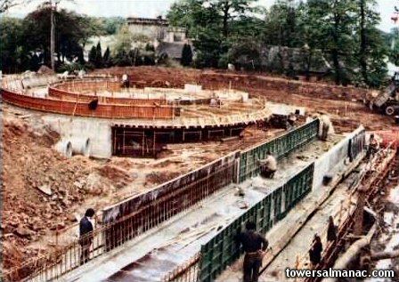 Work is underway in 1980 on the construction of the Log Flume loading carousel.