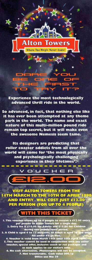 Please note that Alton Towers Almanac is no longer maintained or updated, and almost all information will be out of date.