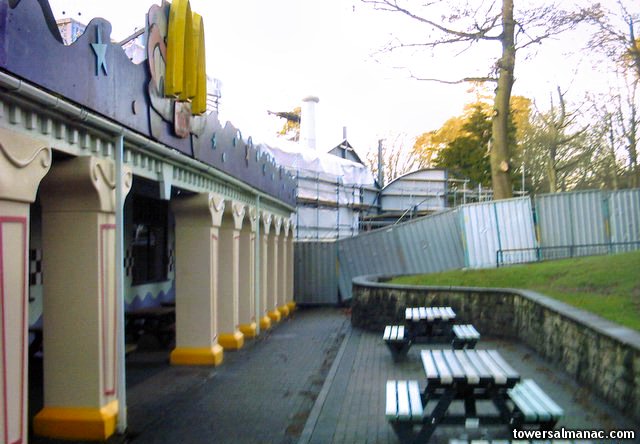 More changes to the exterior, with a definite pointed roof and curved edge above the original Toyland Tours building.