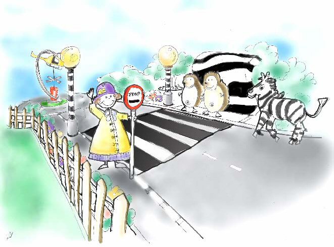 Another artist's impression of what can be expected - here you can see the lollipop lady and the zebra crossing (with hedgehogs, naturally).