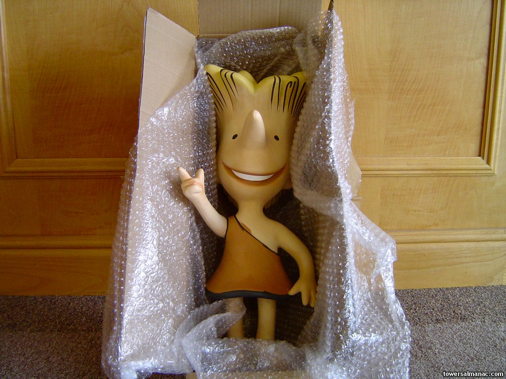 In the boardroom above Corner Coffee in Towers Street, an Oompa-Loompa sits in a box. It's smaller than we'd expected - literally only a couple of feet high!