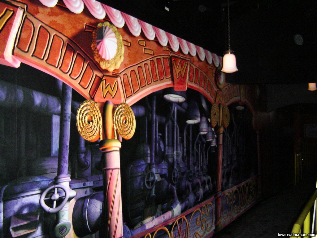 The wall of the preshow, which has a path to the side of it for disabled guests and priority pass holders.