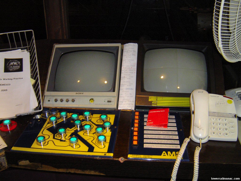 You can see Duel's layout in front of the monitor, with buttons for each section of the ride.