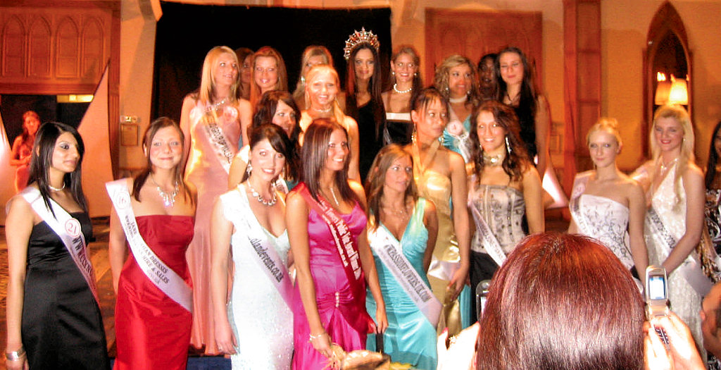 The girls all gather round for a group photo, with Alana Cunningham having been crowned Miss Alton Towers 2006.