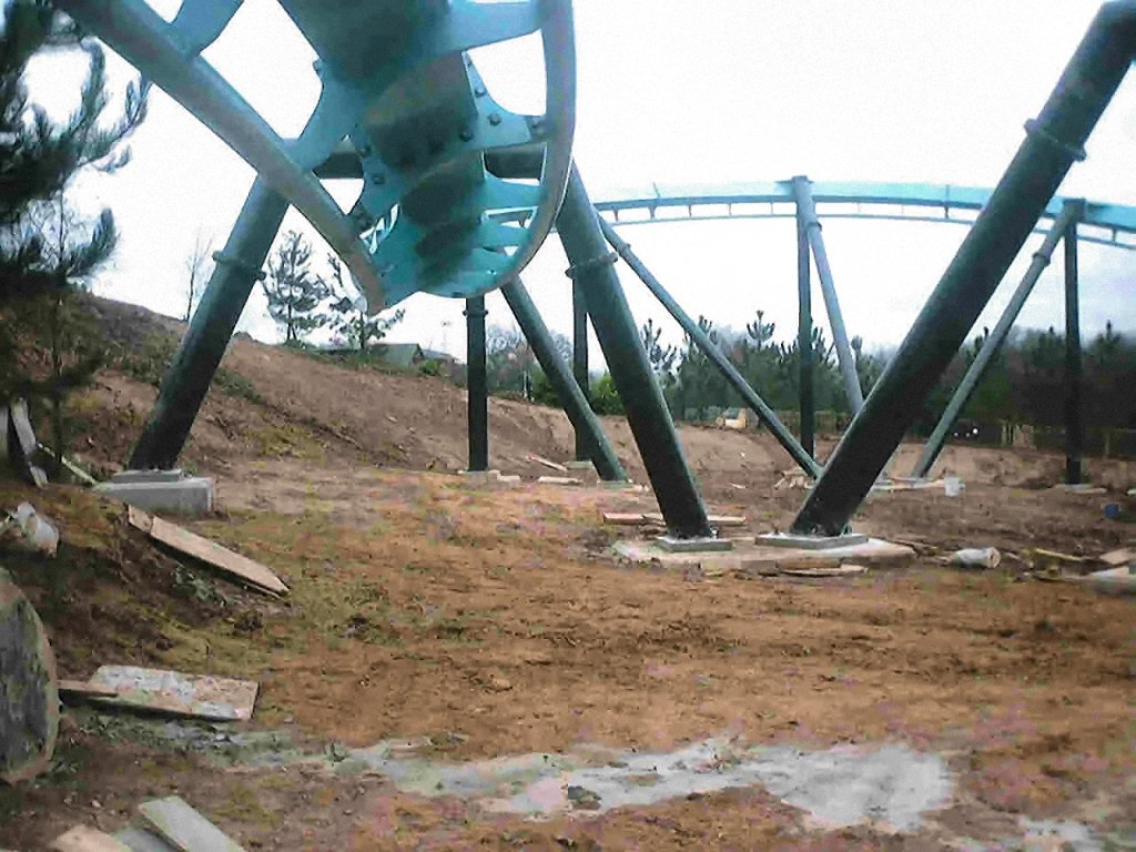The final helix next to the car park, and the last turn of the ride in the foreground.