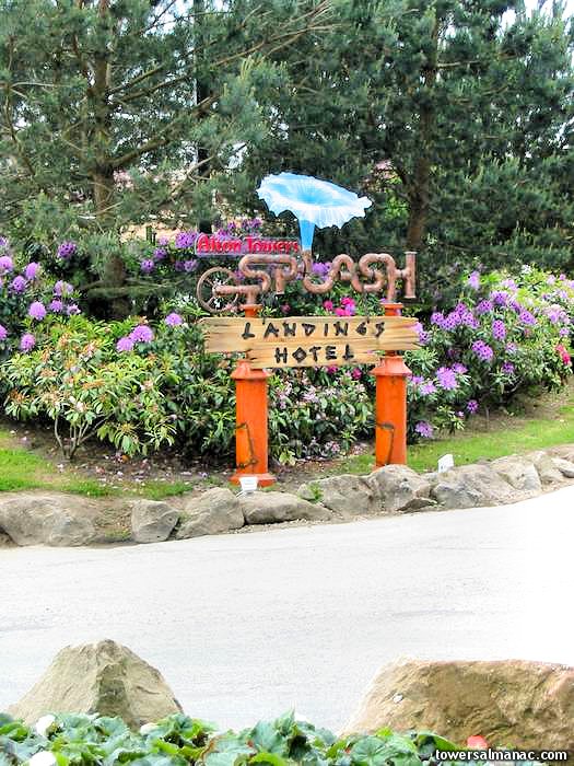 The sign on the hotel roundabout which indicates the Splash Landings drive, complete, illuminated, nice. So far, so good...