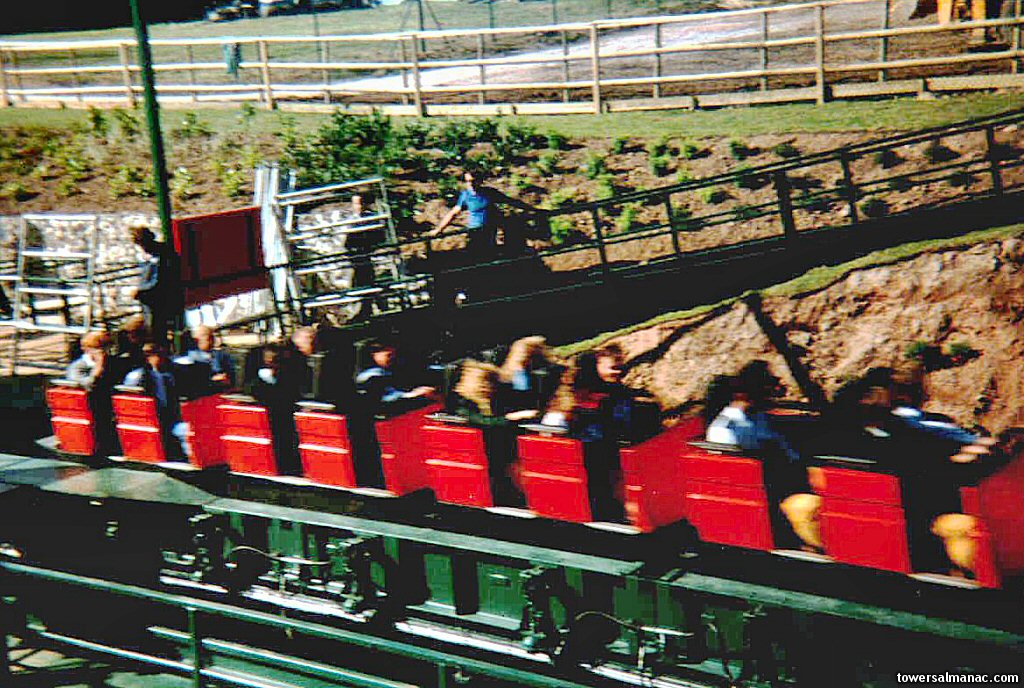 One of the first two loaded test launches of Thunder Looper, in 1990.