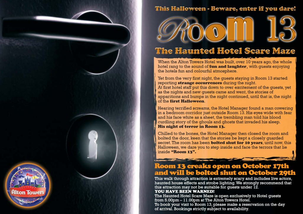 A flyer advertising the Hotel activities, revealing the backstory of Room 13.