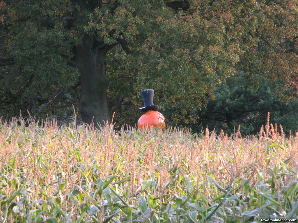 In the distance, you can see the pumpkin-headed scarecrow that was put in the maze months ago.