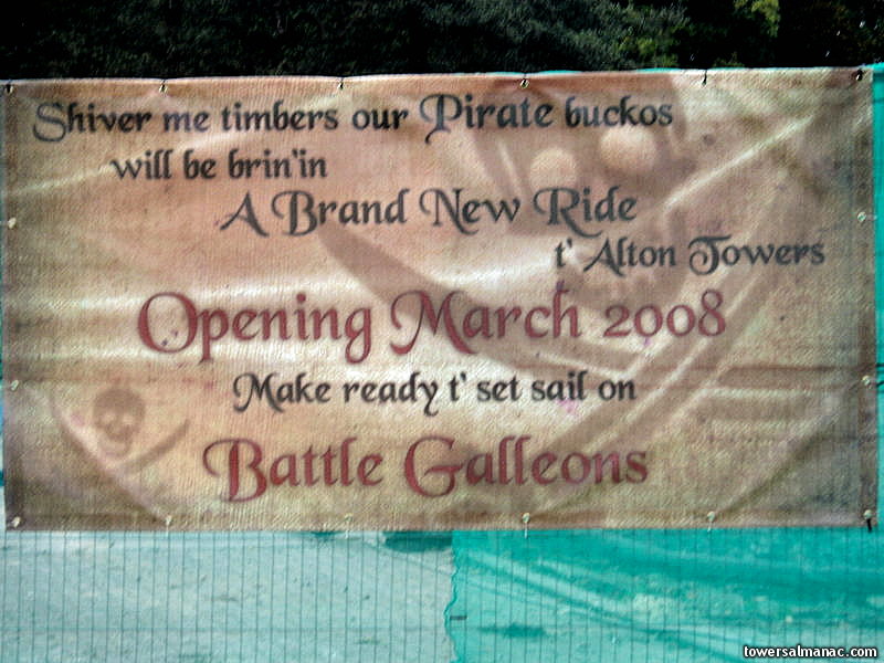 A few of these banners have now appeared on the Splash Battle's fence, revealing the ride's name as "Battle Galleons".