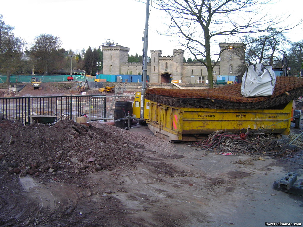 Some steel framework sits on what was the Splash Kart Challenge station platform.