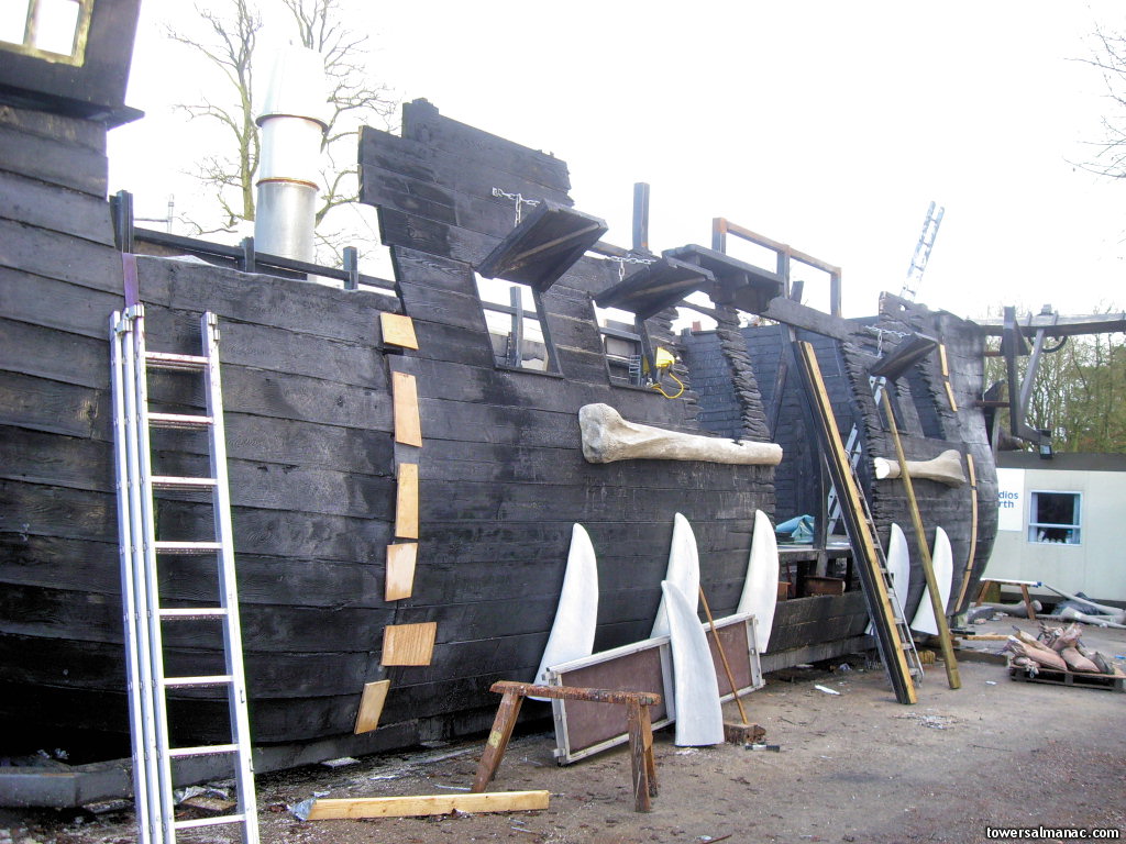 Looking down the side of the ship, which will sit beside the Battle Galleons station.