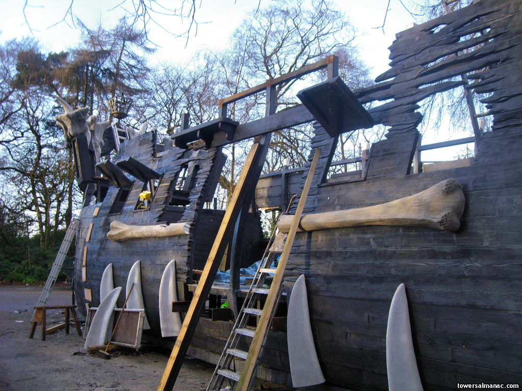 You can see a large hole in the side of the ship, possibly to allow guests to go through.