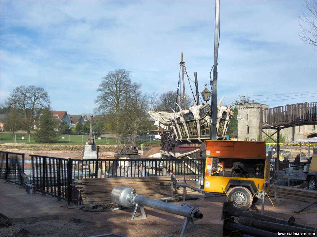 Lots of work has been done since we last saw the site! To the left of the galleon, you can see the trench which the boats will travel along.