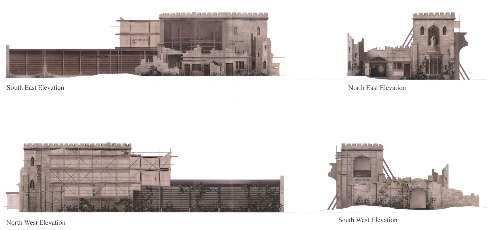 A visual of the station building, showing a "dilapidated castle" theme.