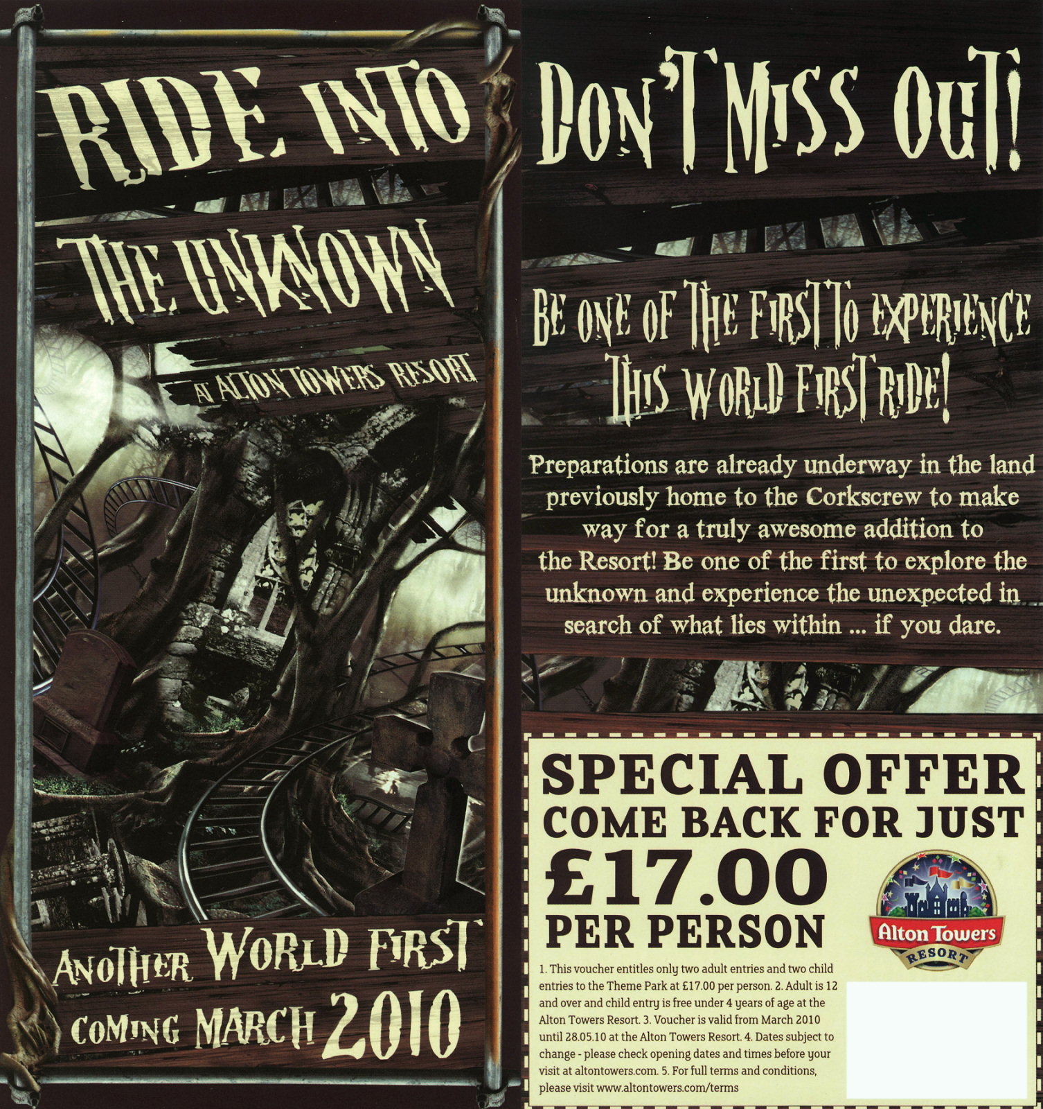 This leaflet is being given out on park, reinforcing the 'creepy' forest theme and confirming that the ride will be a world's first.