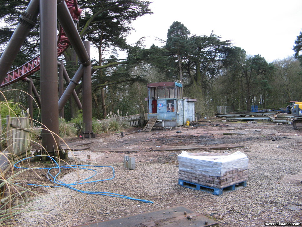 Corkscrew's operator cabin is the only part of the iconic ride left on-site.