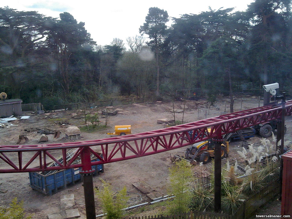 More groundwork has been done recently, and you can also see a gap in the trees where part of the coaster's track will go.
