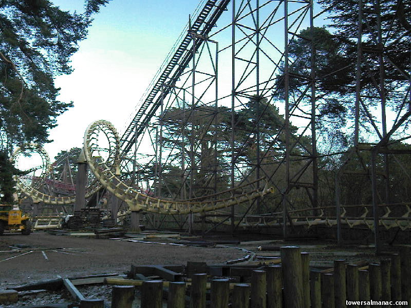 The lift hill, track beneath it, part of the helixes and the iconic corkscrews are all that are left.