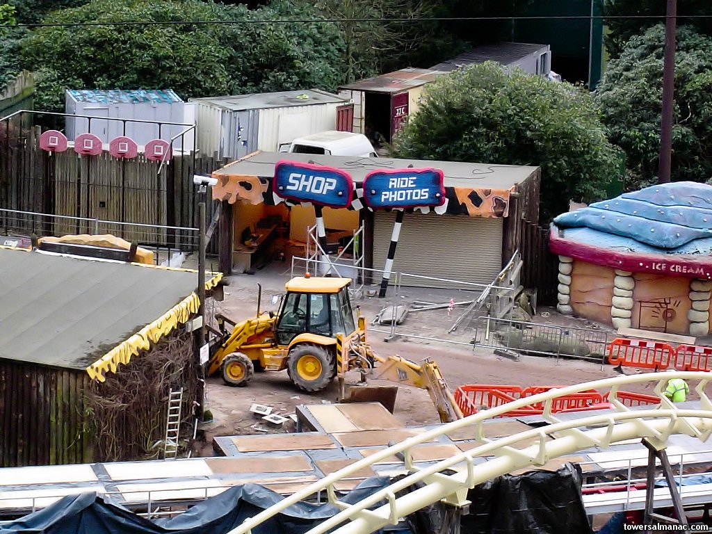 From Corkscrew's lift hill, you can clearly see Rita's ride photo shop, complete with chequered flags.