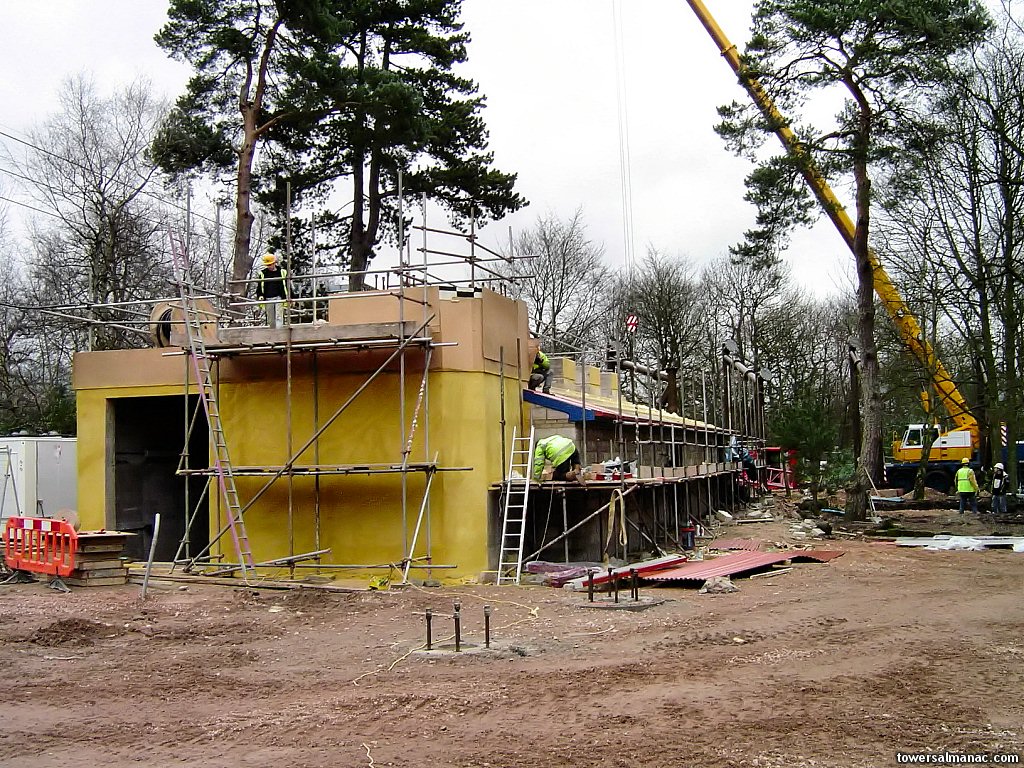 A closer look at the yellow hydraulics building. It currently has no roof to allow the larger and heavier components to be lowered in by crane.