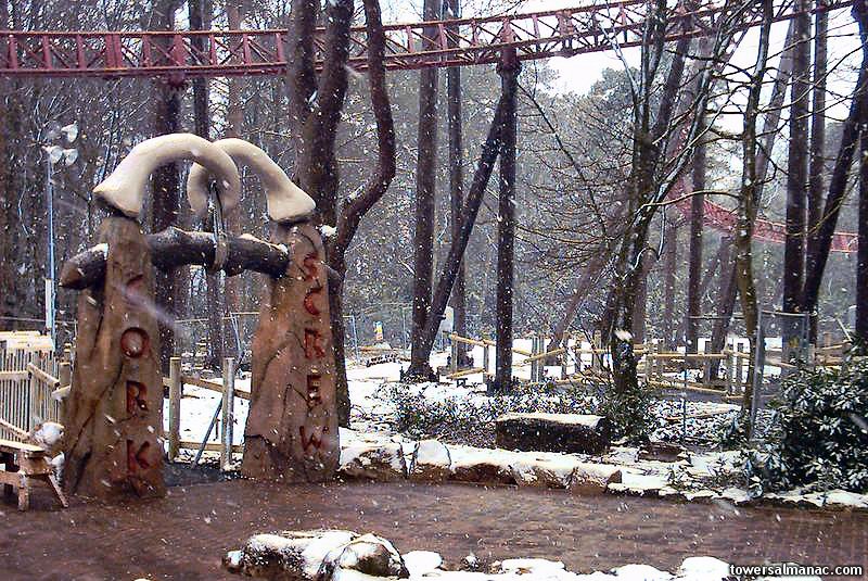 Another look at the sign. In the background, you can see both Corkscrew's queue line being built and also part of Rita's.