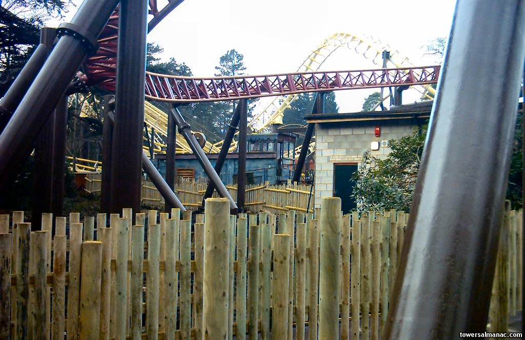 From here you can see Corkscrew's entrance and exit paths, which pass the Corkscrew on-ride photo booth.
