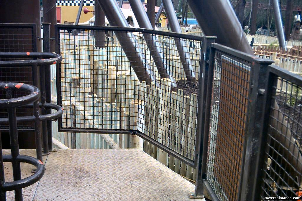 Here you can see where a corner of Corkscrew's platform has been cut out to make way for one of Rita's supports.