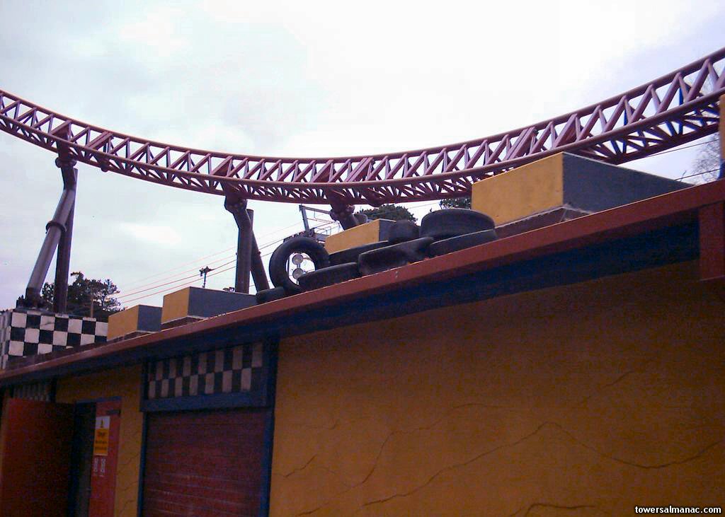 Tyres on the hydraulics shed roof, which you'll fly past at great speed.